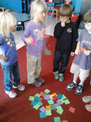 The kids did such a great job working together to sort buttons of different shapes, sizes, and different number of holes. They had to work collaboratively together to decide how they were going to sort their buttons. They really worked well together and as a team. They were given the opportunity to show three different ways to sort these buttons and all of them did an excellent job!